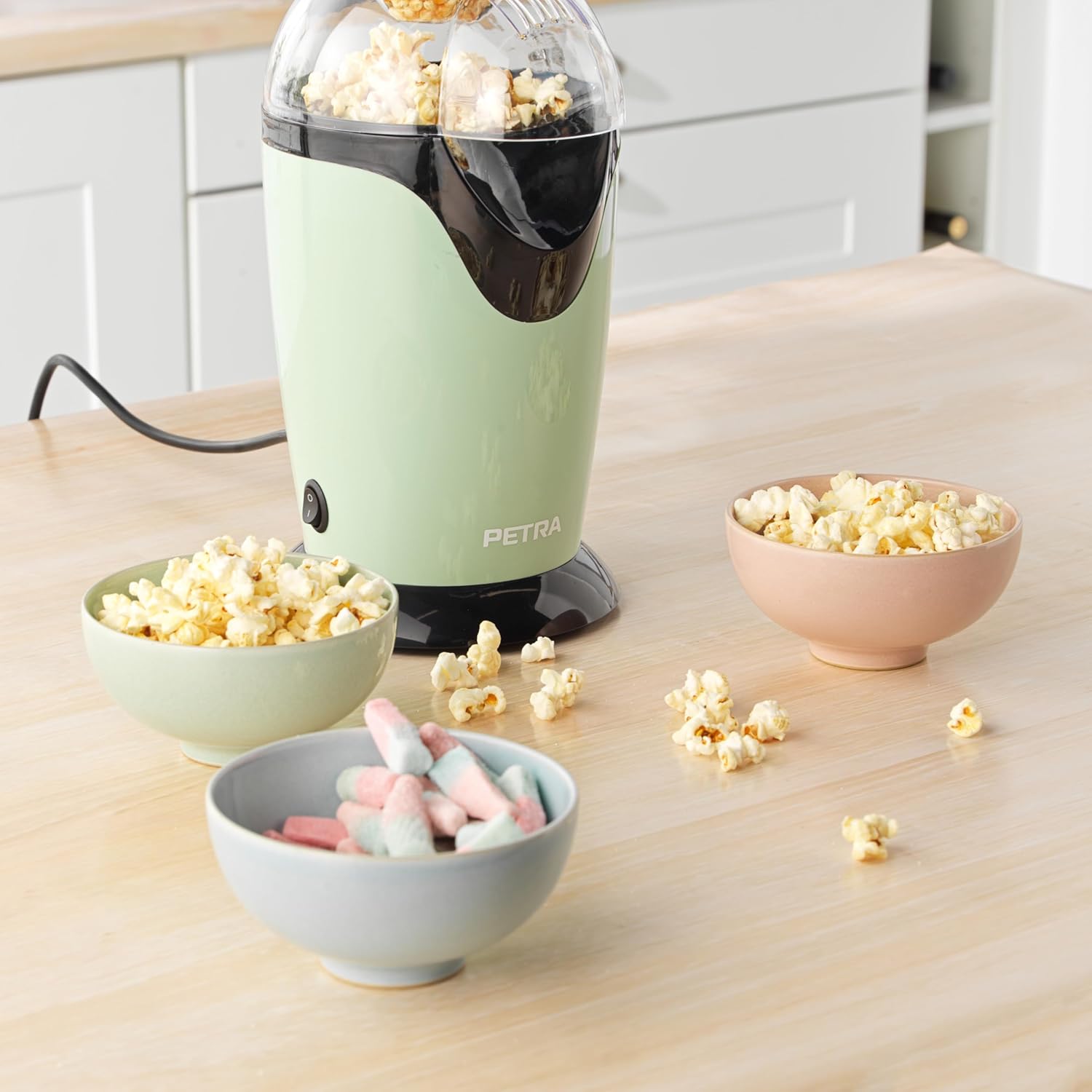 La macchina per popcorn ad aria calda firmata Cecaro Group è la soluzione ideale per chi desidera godersi popcorn sani, leggeri e pronti in pochissimi minuti. Grazie alla tecnologia a circolazione di aria calda, questo elettrodomestico permette di preparare popcorn senza l’utilizzo di olio o burro, ottenendo uno snack genuino e croccante perfetto per grandi e piccini. Con una potenza di 1200 W, la macchina si riscalda rapidamente e garantisce un’esplosione uniforme dei chicchi, offrendo sempre un risultato ottimale.