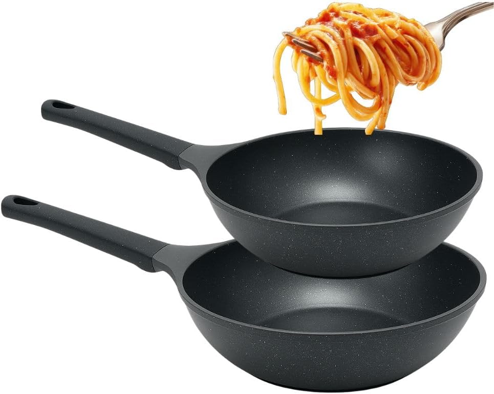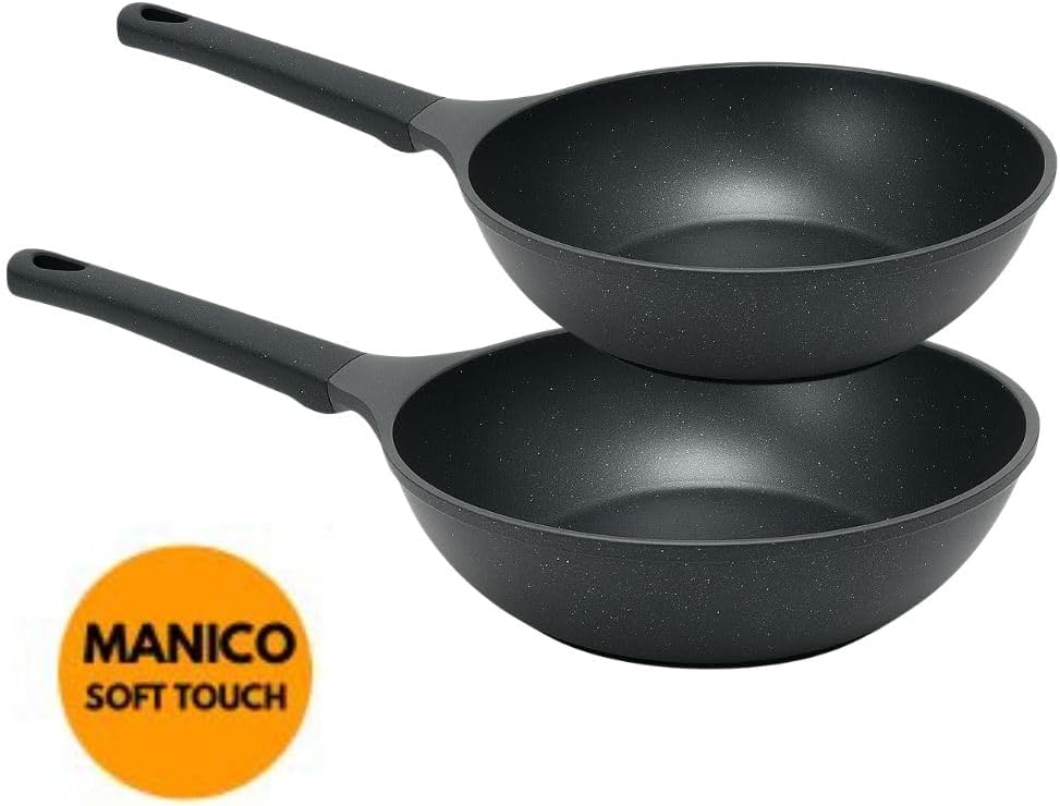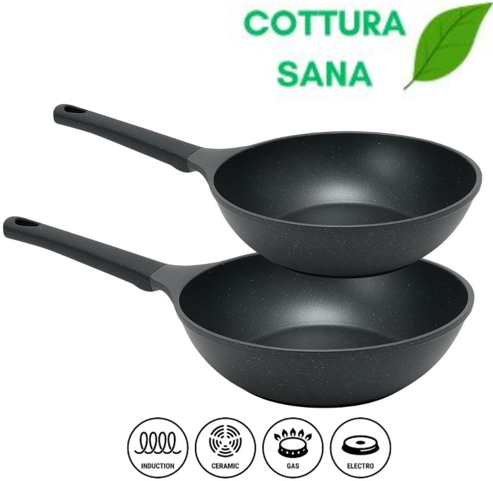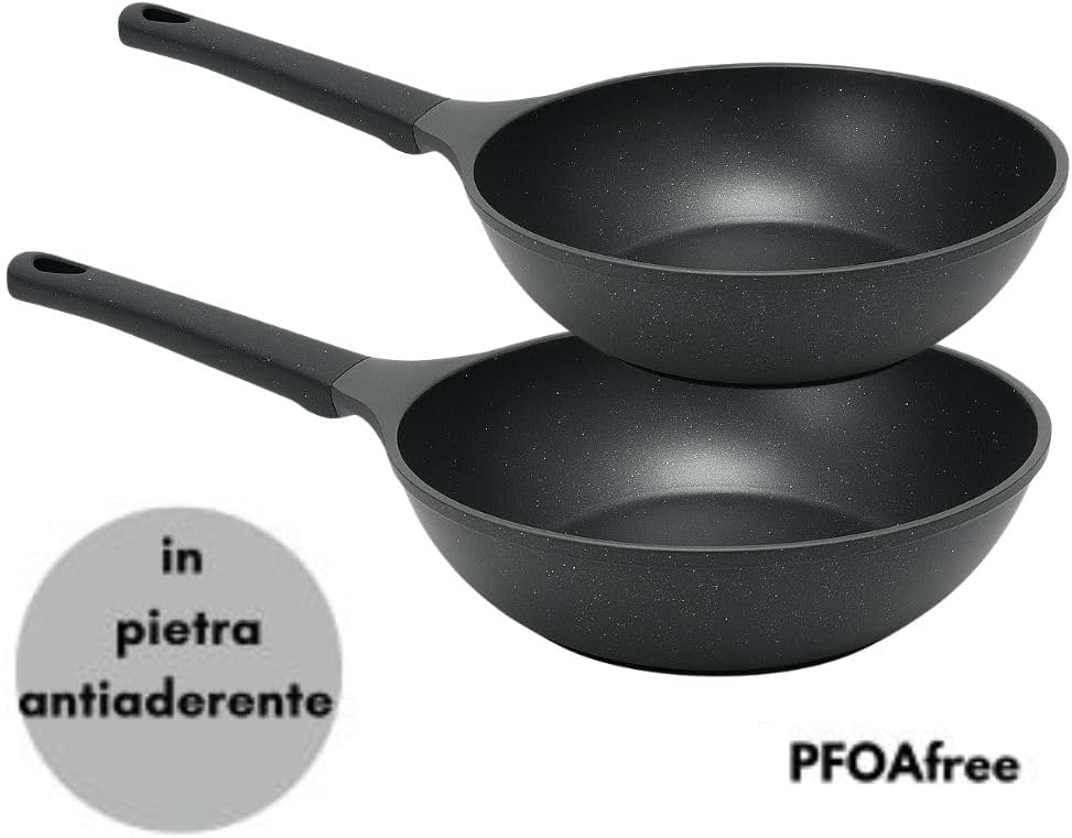 Cecaro Group – Set 2 Wok in Pietra Antiaderente Ø 28 cm e Ø 30 cm – PFOA Free nero
