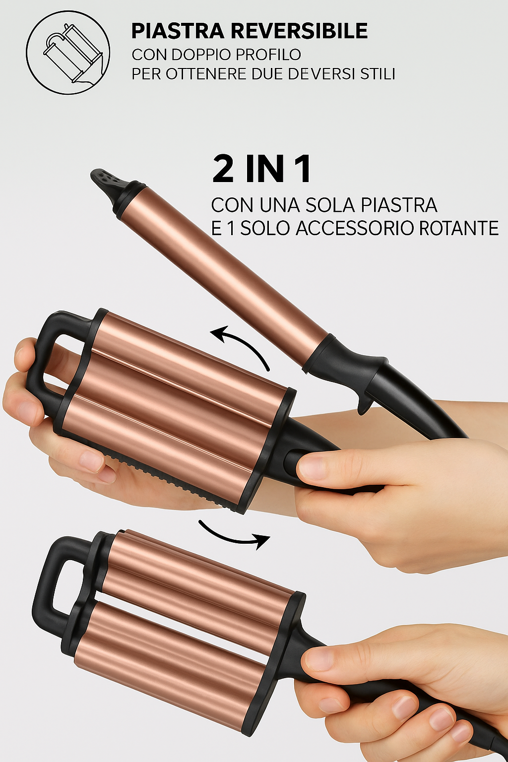 ✅ Facile da usare: basta ruotare l’accessorio per cambiare stile senza dover cambiare piastra