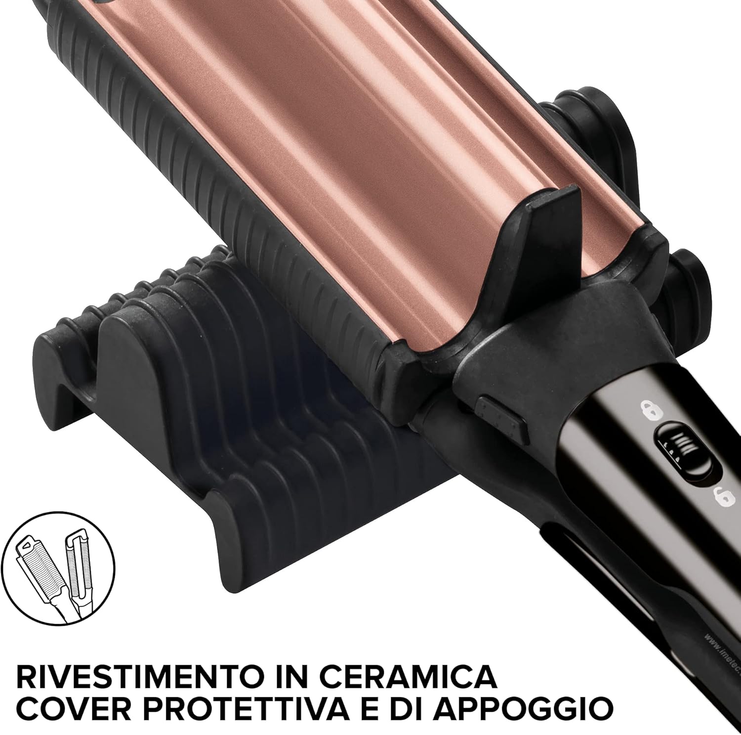 Con un solo accessorio rotante e una sola piastra potrai ottenere due diversi stili: onde larghe e morbide oppure onde strette e definite.