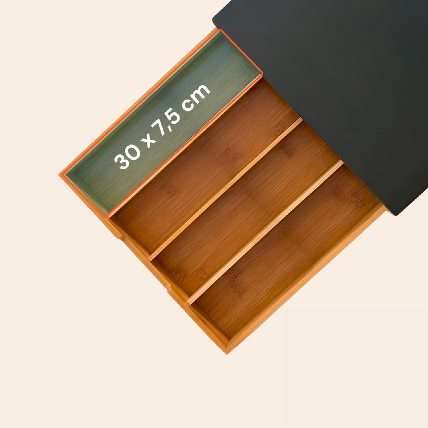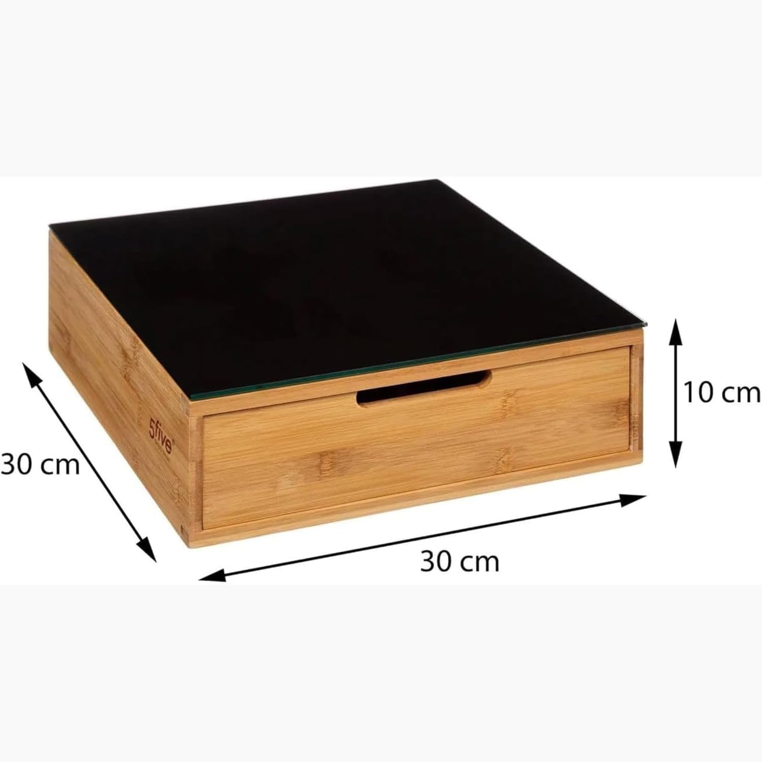 Organizza il tuo angolo caffè con stile grazie al porta cialde in bambù firmato Cecaro Group. Con dimensioni compatte di 30 x 30 x 10 cm, questo elegante organizer si adatta perfettamente a qualsiasi spazio, sia in cucina che in ufficio, mantenendo tutto in ordine: capsule, cialde, bustine di tè, zucchero e altri accessori.