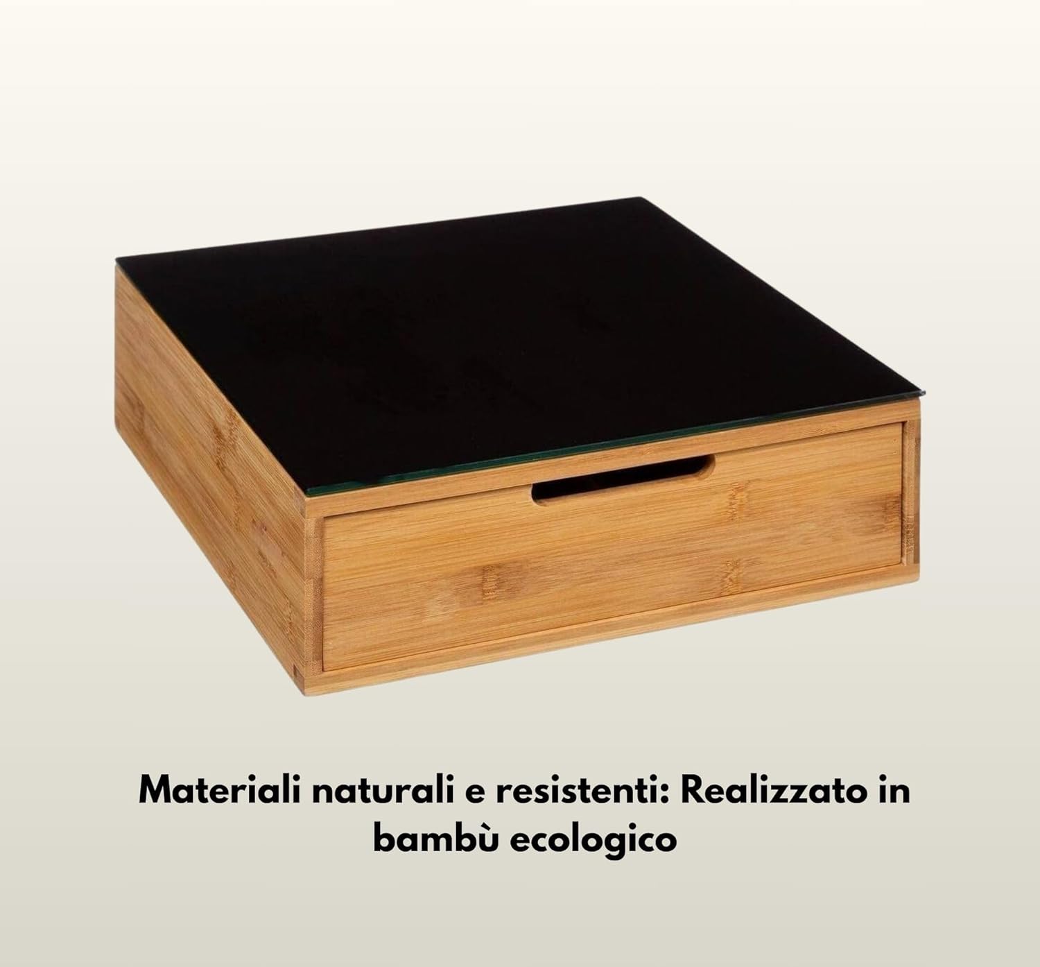 - Materiali naturali e resistenti: Realizzato in bambù ecologico, il porta cialde unisce estetica, resistenza e sostenibilità.