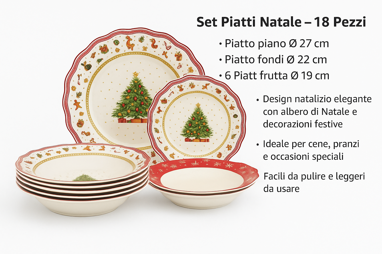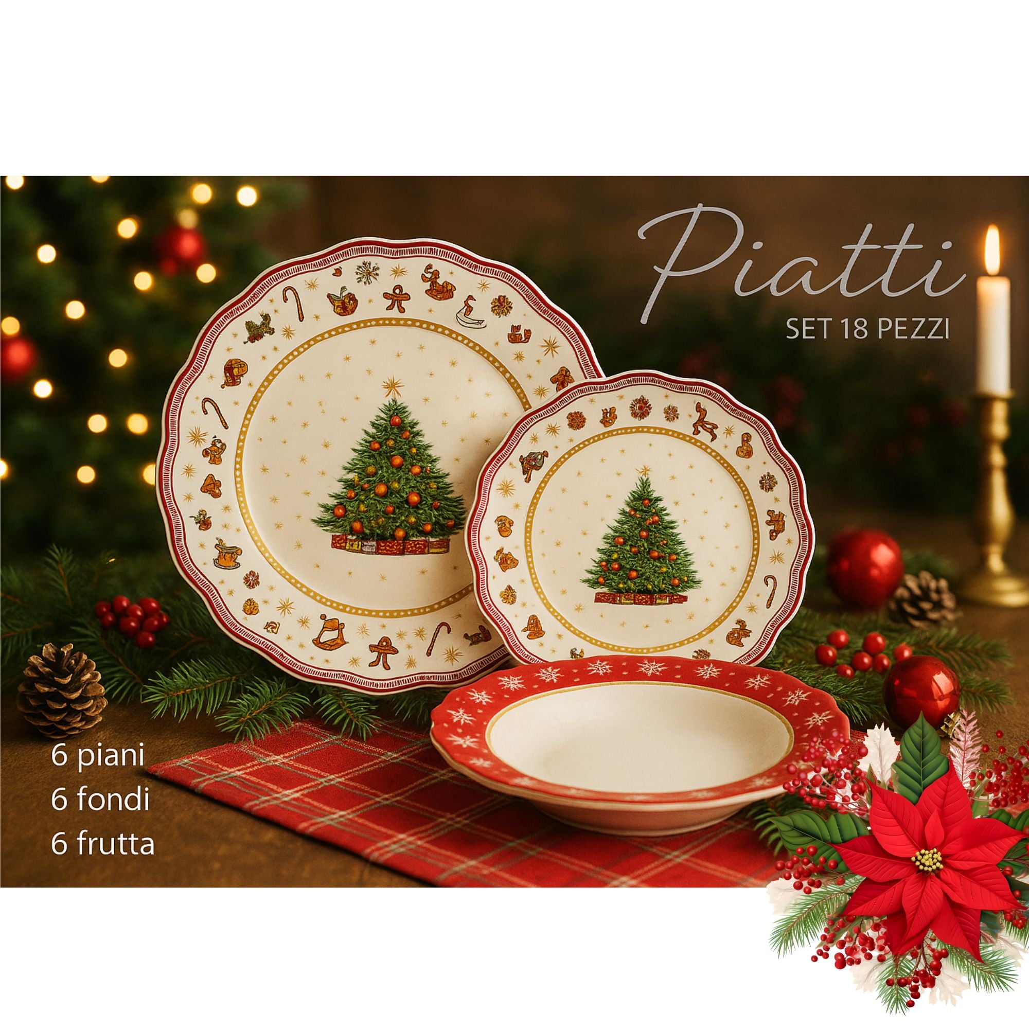 Servizio Piatti Natalizi 18 Pezzi Albero