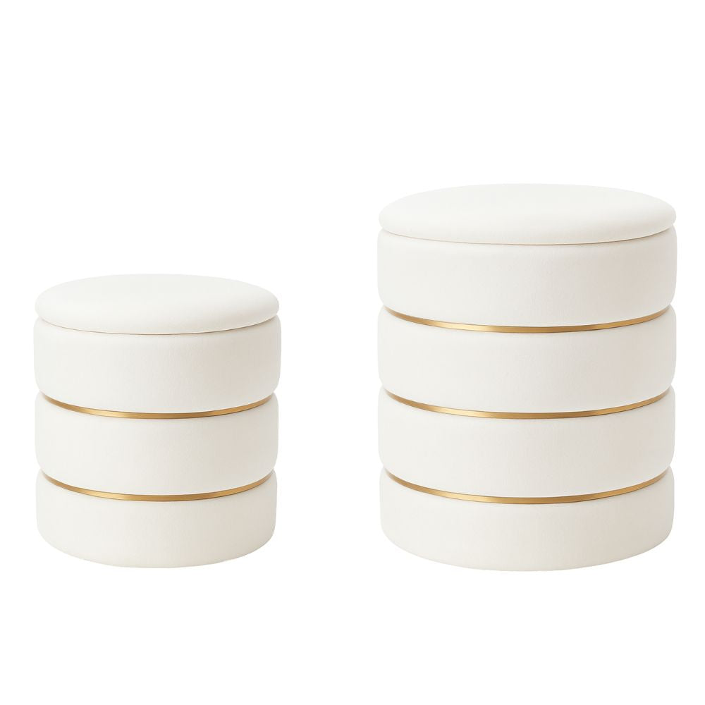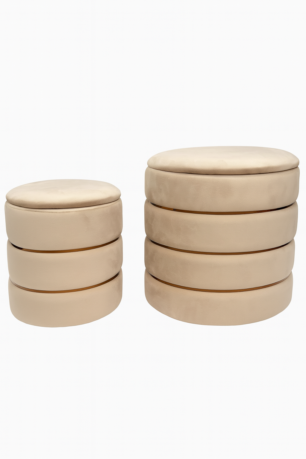 Aggiungi stile e funzionalità al tuo ambiente con questo raffinato set da 2 pouf contenitori in velluto, ideali per salotto, camera da letto, ingresso o cabina armadio.