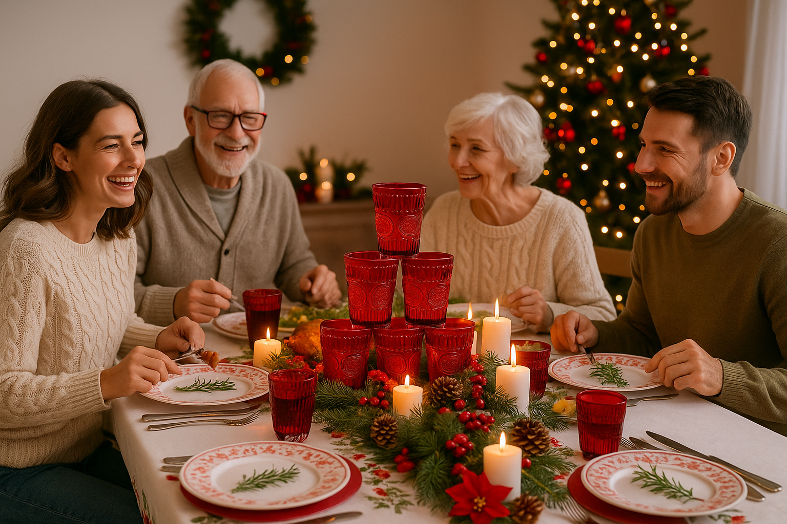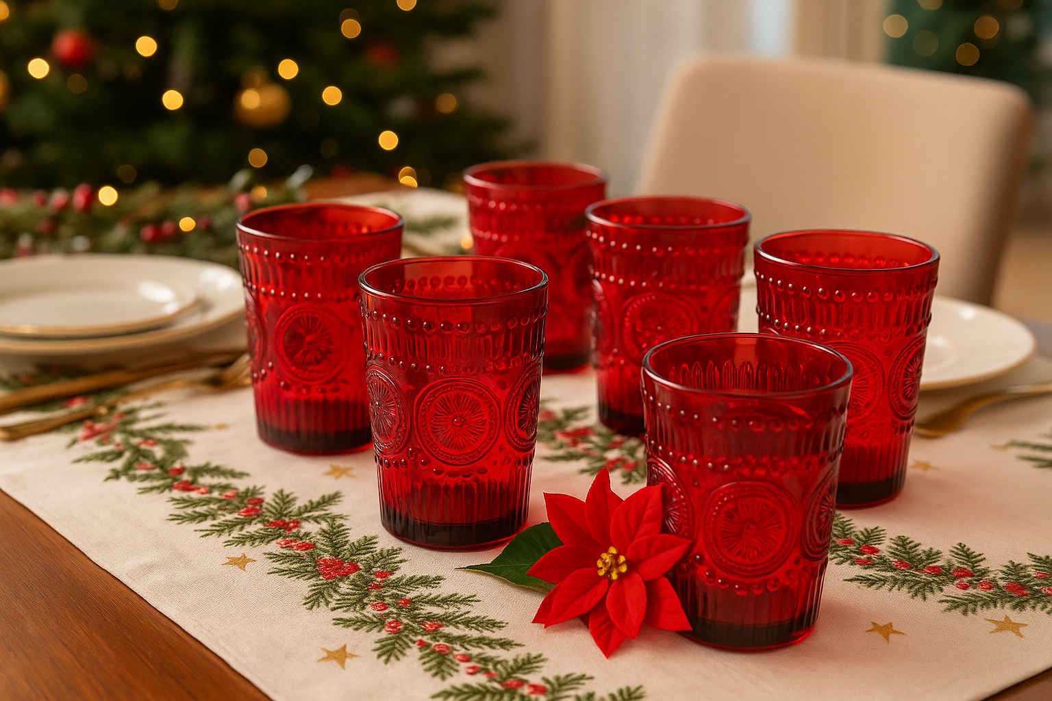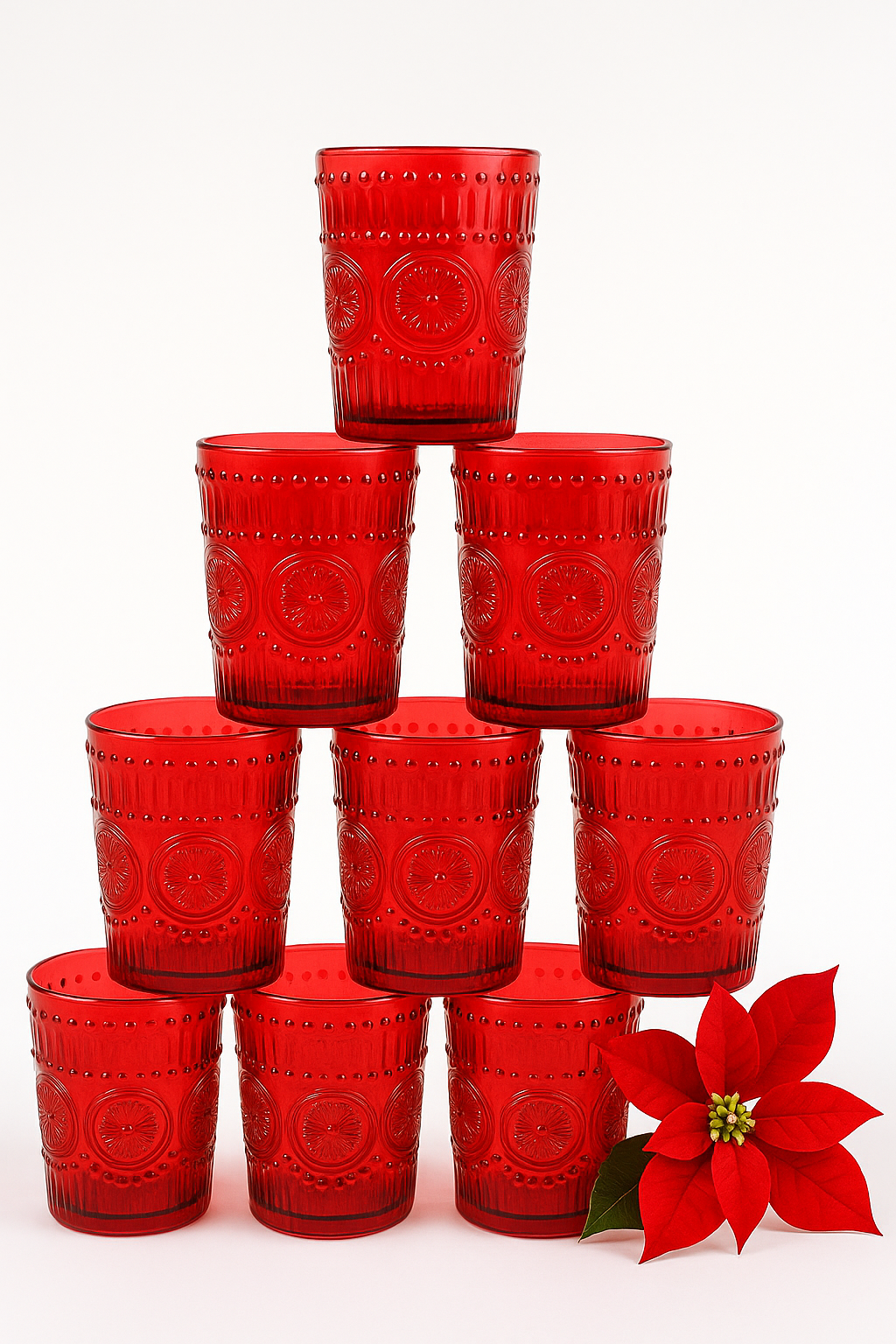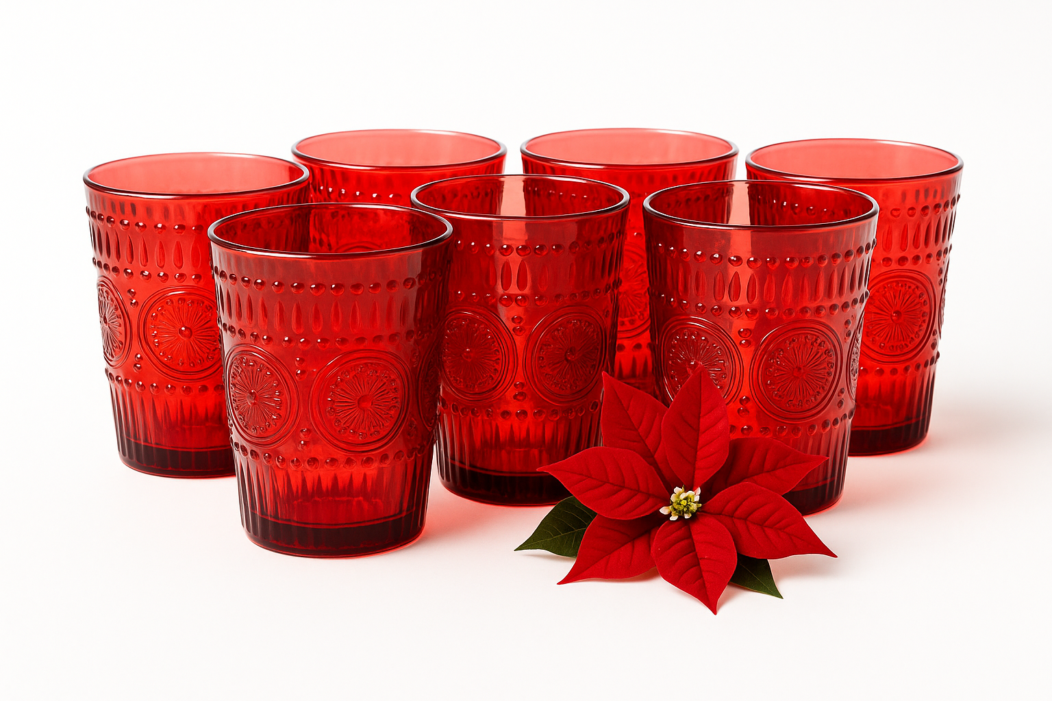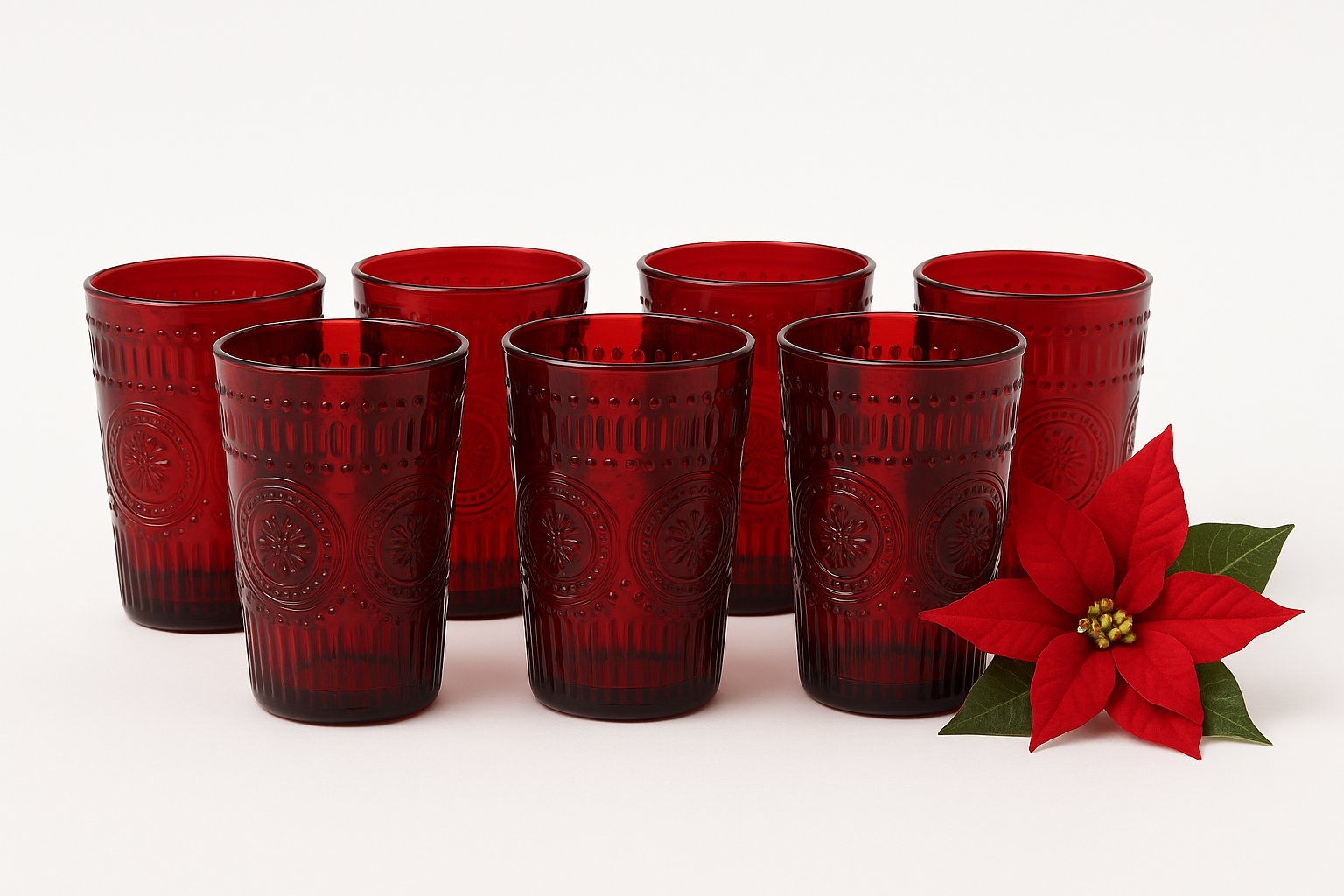 Set Bicchieri Natalizi in Vetro Rosso – 6 pezzi da 280 ml