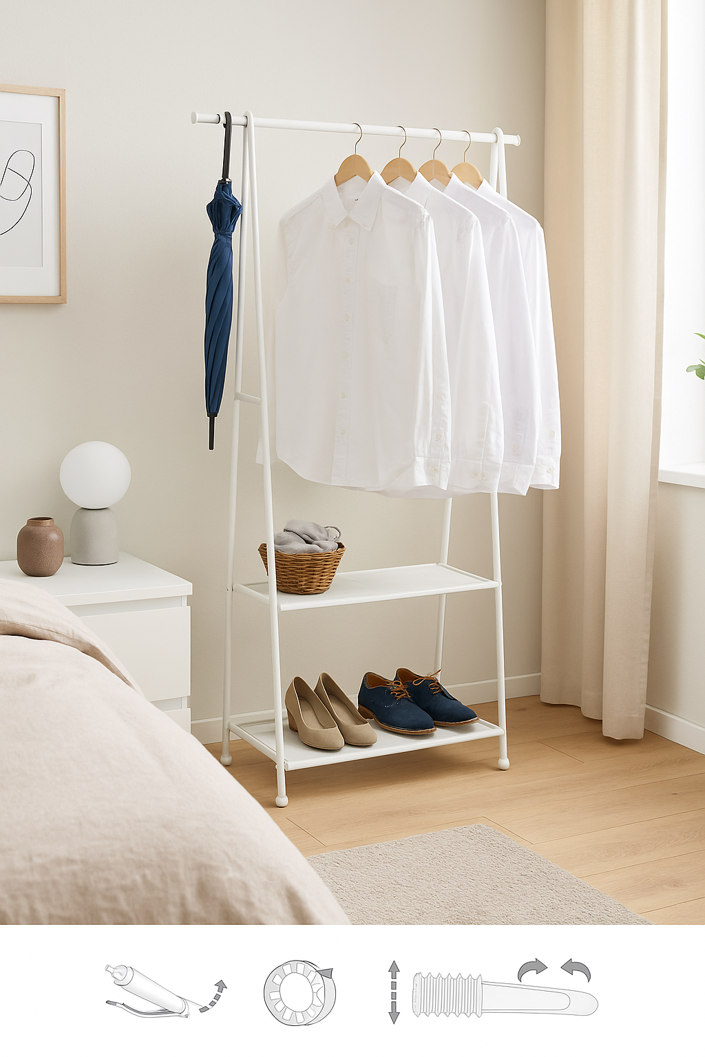 Con questo pratico stand attaccapanni potete creare nuovo spazio per i vostri abiti in qualunque stanza.