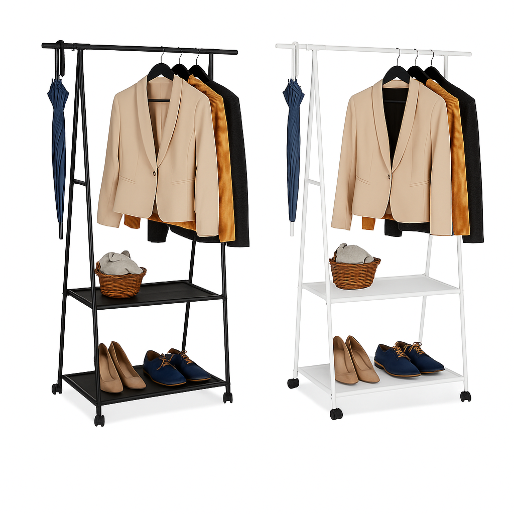 Stand Appendiabiti in Metallo con Ruote – Nero o Bianco