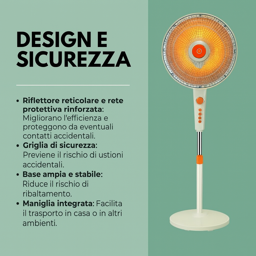 La stufa elettrica a piantana Cecaro Group utilizza una moderna tecnologia al carbonio che garantisce un riscaldamento rapido, uniforme e a basso consumo. Grazie all’oscillazione automatica a 90°, distribuisce il calore in modo omogeneo in tutta la stanza, rendendola ideale per ambienti domestici e uffici. Dotata di sistema antiribaltamento e base stabile, assicura un utilizzo sicuro e affidabile. Perfetta per chi cerca comfort immediato, efficienza e sicurezza.