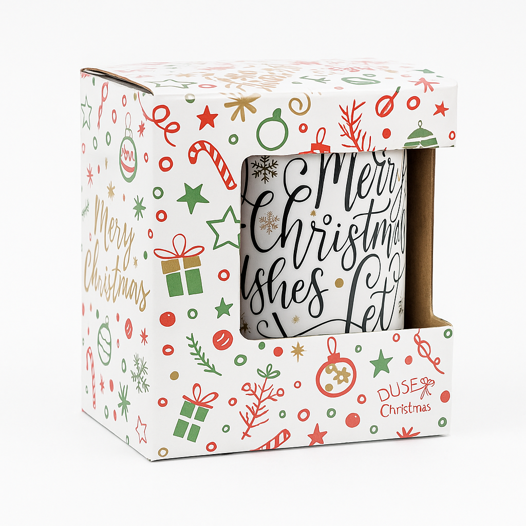 - 🎄 Design natalizio elegante – Decorata con scritte festive e dettagli raffinati, è ideale per ricreare un’atmosfera calda e accogliente.